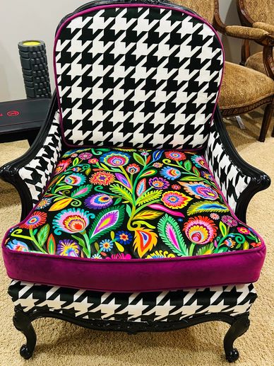 This beautiful accent chair has been refinished and updated. Add a great statement piece to your home! See more photos in the gallery.