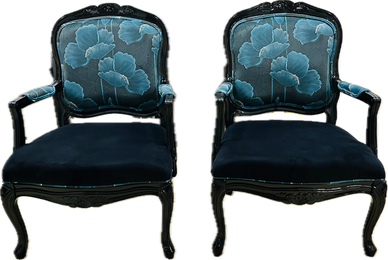 Beautiful custom velvet refurbished arm chairs. Everything but the frame is new! Make a statement in any room with these one-of-a-kind chairs.